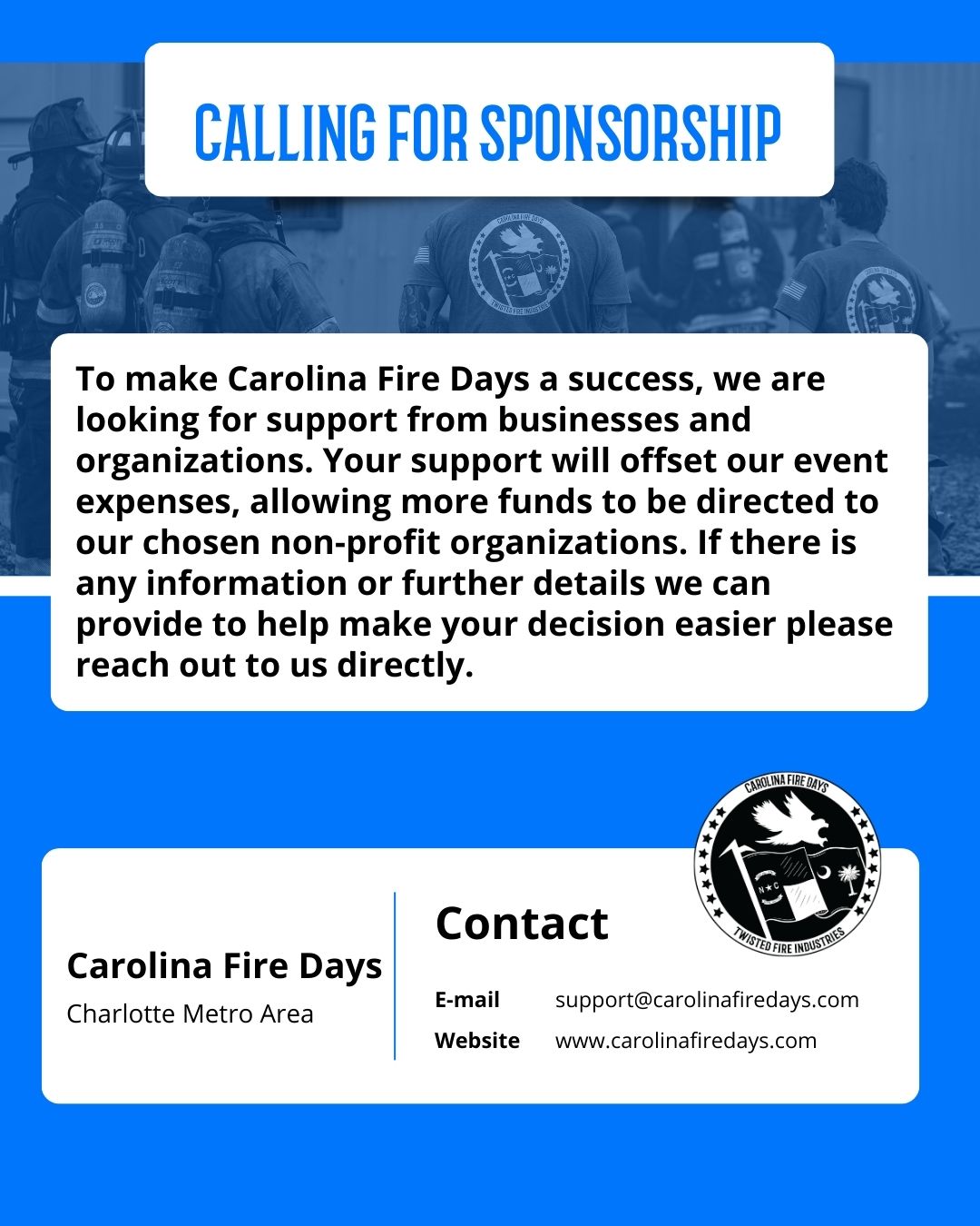 - Social media recognition from Carolina Fire Days and Twisted Fire Industries